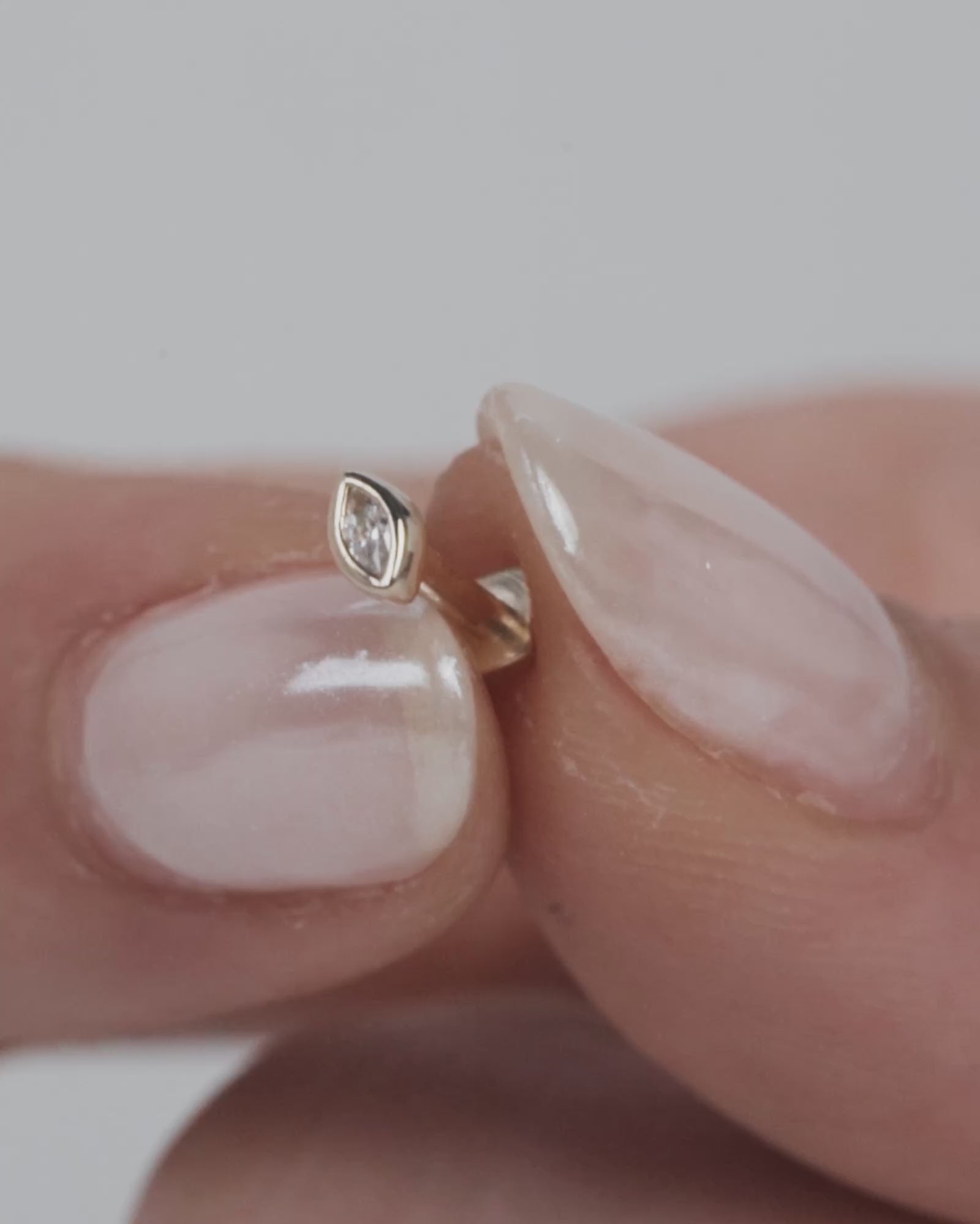 Our Dawn marquise flatback stud earring features a marquise-cut white cubic zirconia gem in a delicate bezel setting.