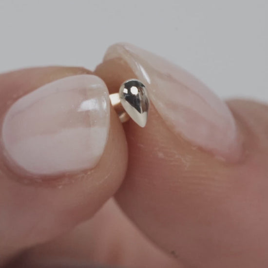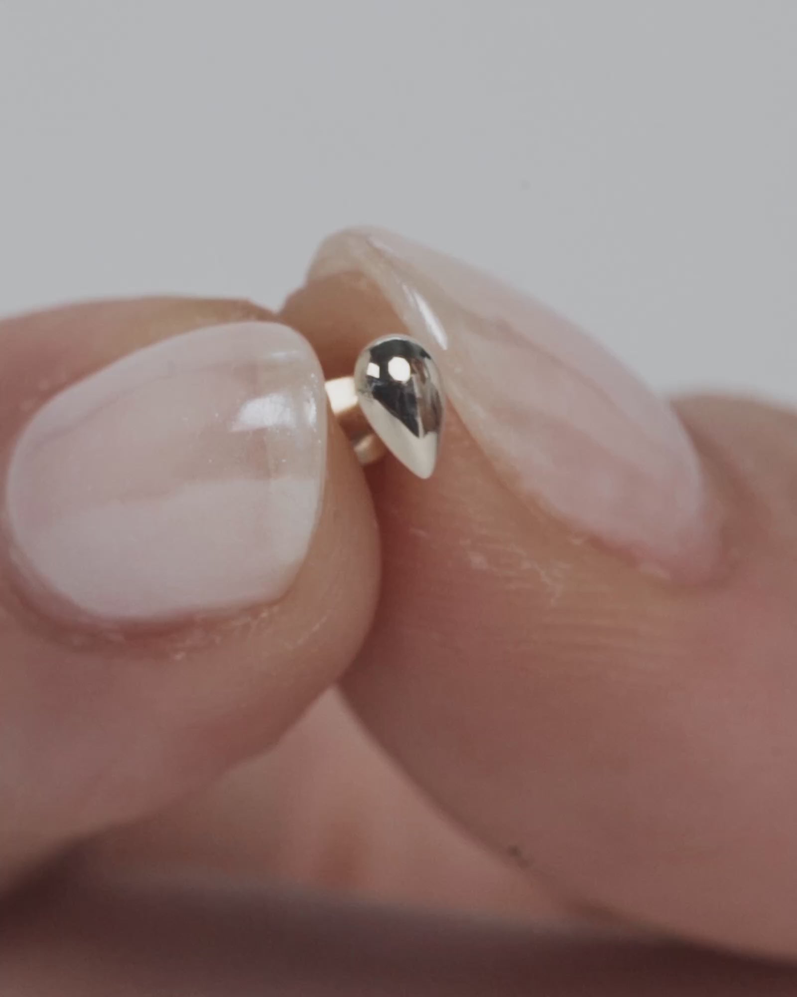Our Dew flatback stud earring features a sleek, rounded, and soft teardrop silhouette.