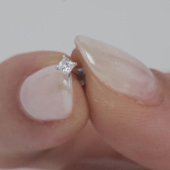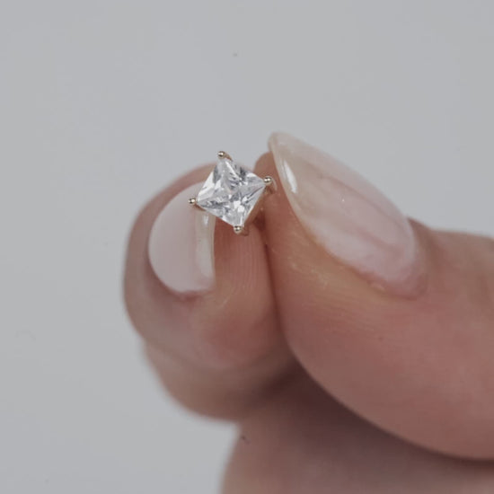 Our Mirror square flatback stud earring features a radiant princess-cut white cubic zirconia gem.