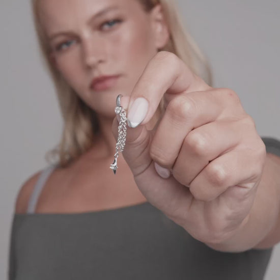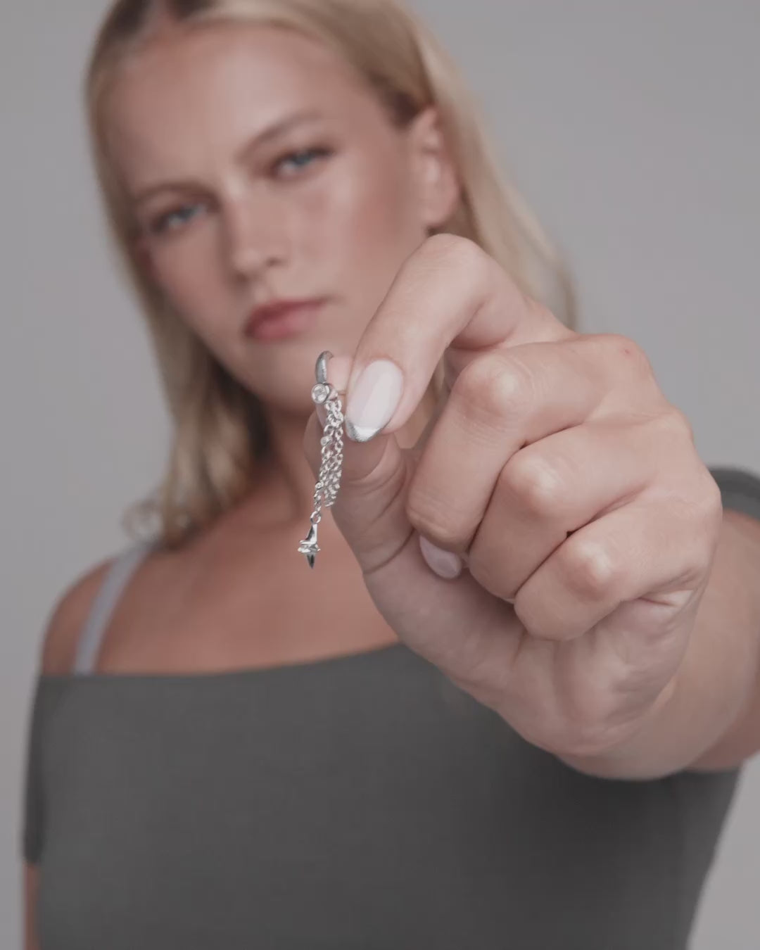 A stud with cascading chains and a petite star charm—wear both chains down or loop one back.