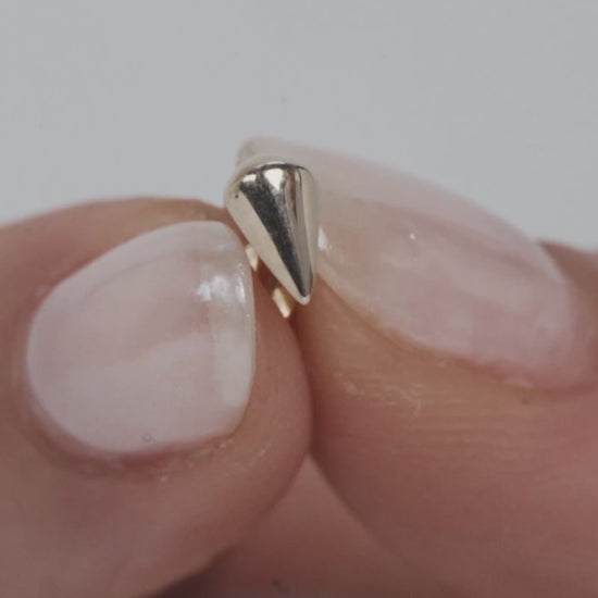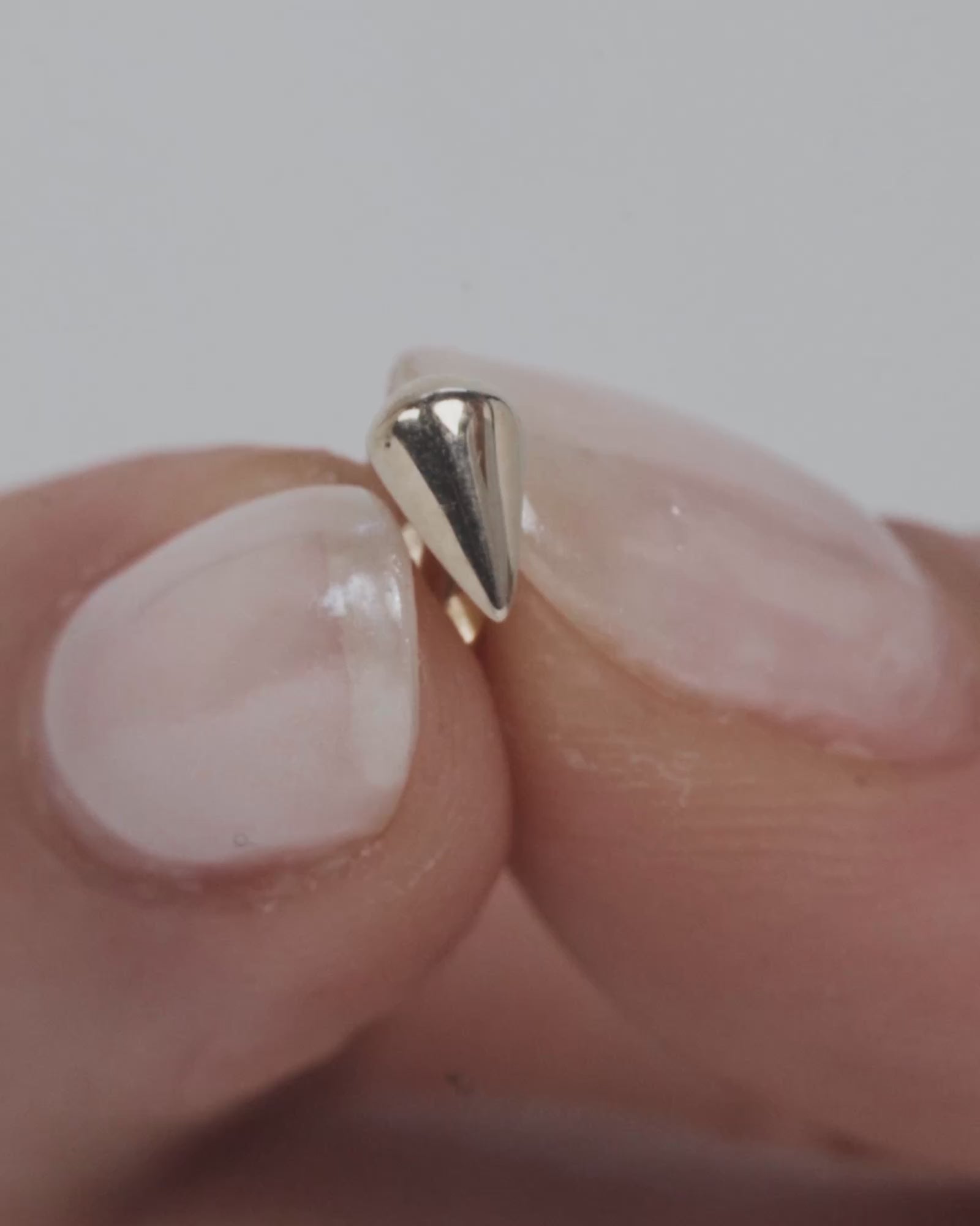 Our Moondrop flatback stud earring features a sleek teardrop silhouette with beveled geometric contours.
