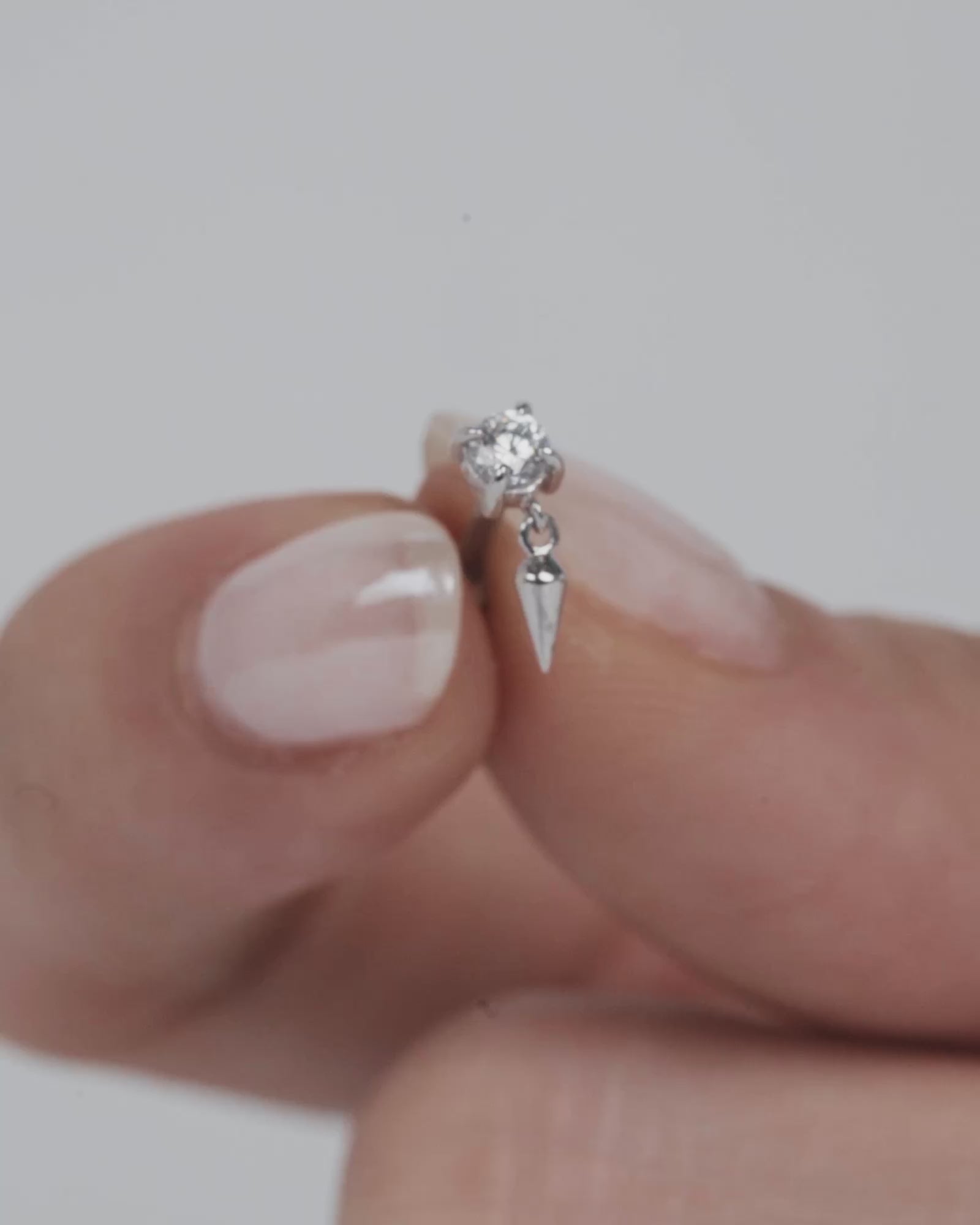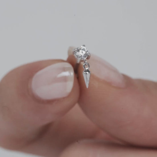 Our Muse flatback stud earring features a conical pendant dangling from a round-cut white cubic zirconia gem.