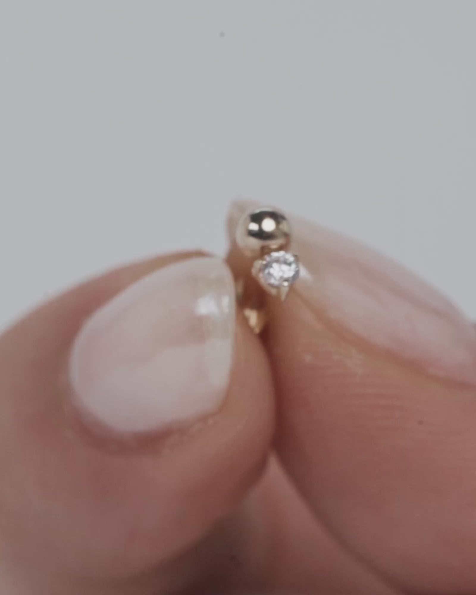 Our Sloane flatback stud earring features a round-cut white cubic zirconia gem anchored to a polished dome base.