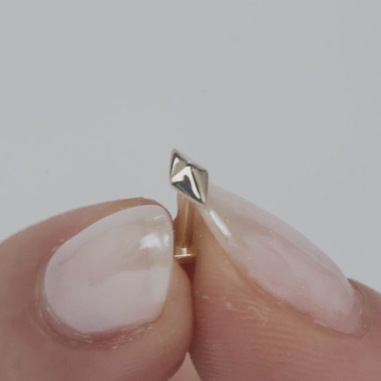 Our Tia flatback stud earring features a polished, sculpted diamond-shaped accent, radiant from every angle.