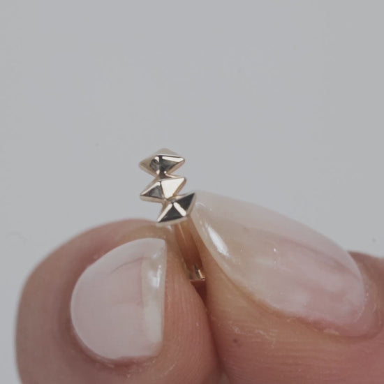 Our Tulip lite flatback stud earring features a trio of sculpted diamond-shaped accents, gathered in graceful symmetry for poise and edge.